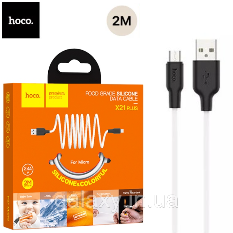 Кабель Hoco USB – Micro-USB 2метра 2.4А силікон X21 Plus White